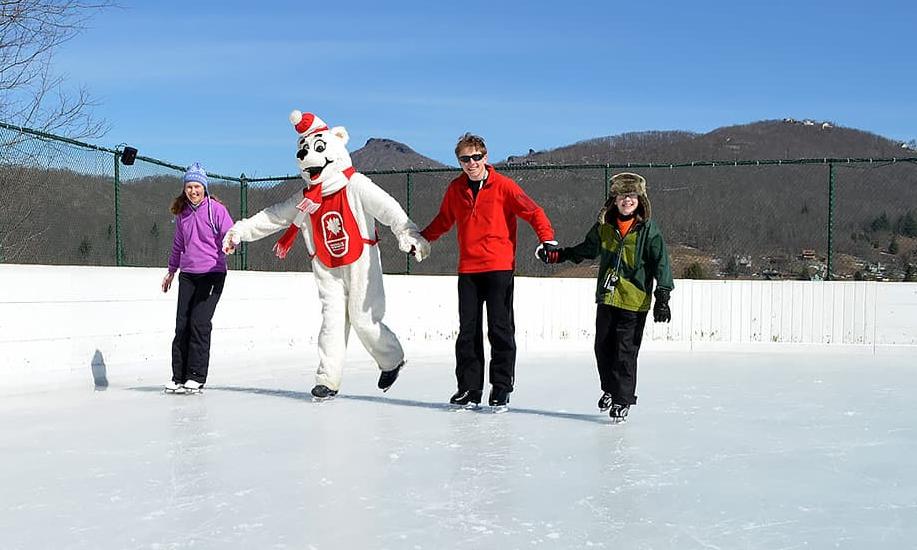 Sugar Mountain Resort’s 10,000 square foot refrigerated outdoor ice skating rink is located adjacent to parking lot D and the Tubing Park at the Sugar Mountain Golf Course