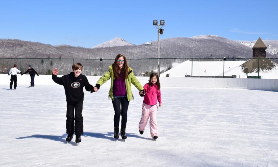 Sugar Mountain Resort’s 10,000 square foot refrigerated outdoor ice skating rink is located adjacent to parking lot D and the Tubing Park at the Sugar Mountain Golf Course